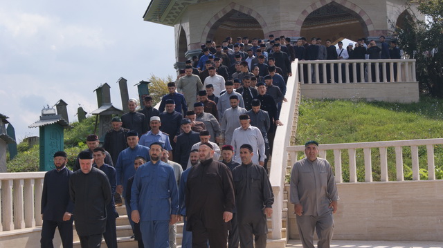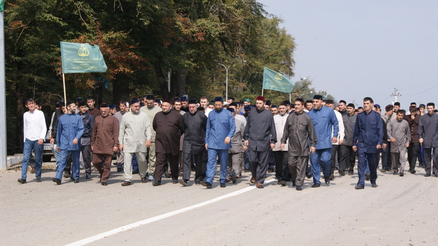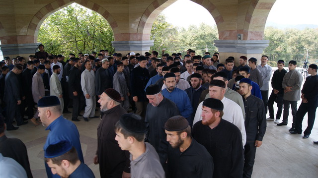 По сложившейся традиции, перед началом занятий нового учебного года,  студенты РИУ во главе с ректором А. Мутушевым посетили зиярт матери Кунта-Хаджи Хеди Кишиевой.